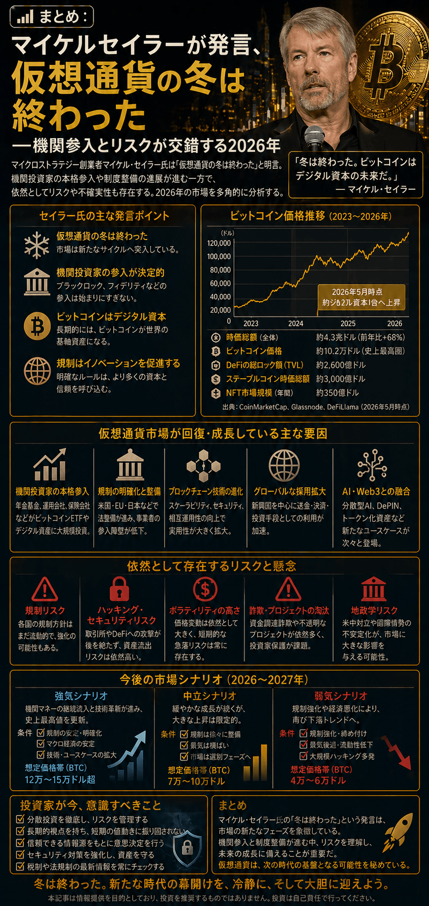 📊まとめ:マイケルセイラーが発言、仮想通貨の冬は終わった──機関参入とリスクが交錯する2026年